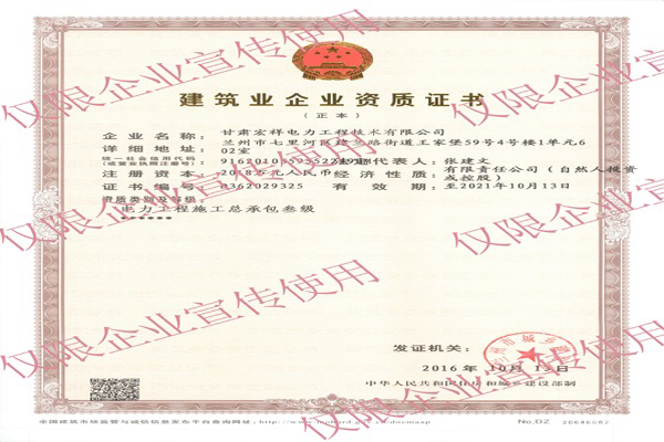您現在的位置 >> 首頁 >> 新聞 >> 熱列慶祝我公司取得甘肅省住房和城鄉建設廳頒發的建筑業企業電力工程施工總承包叁級資質證書